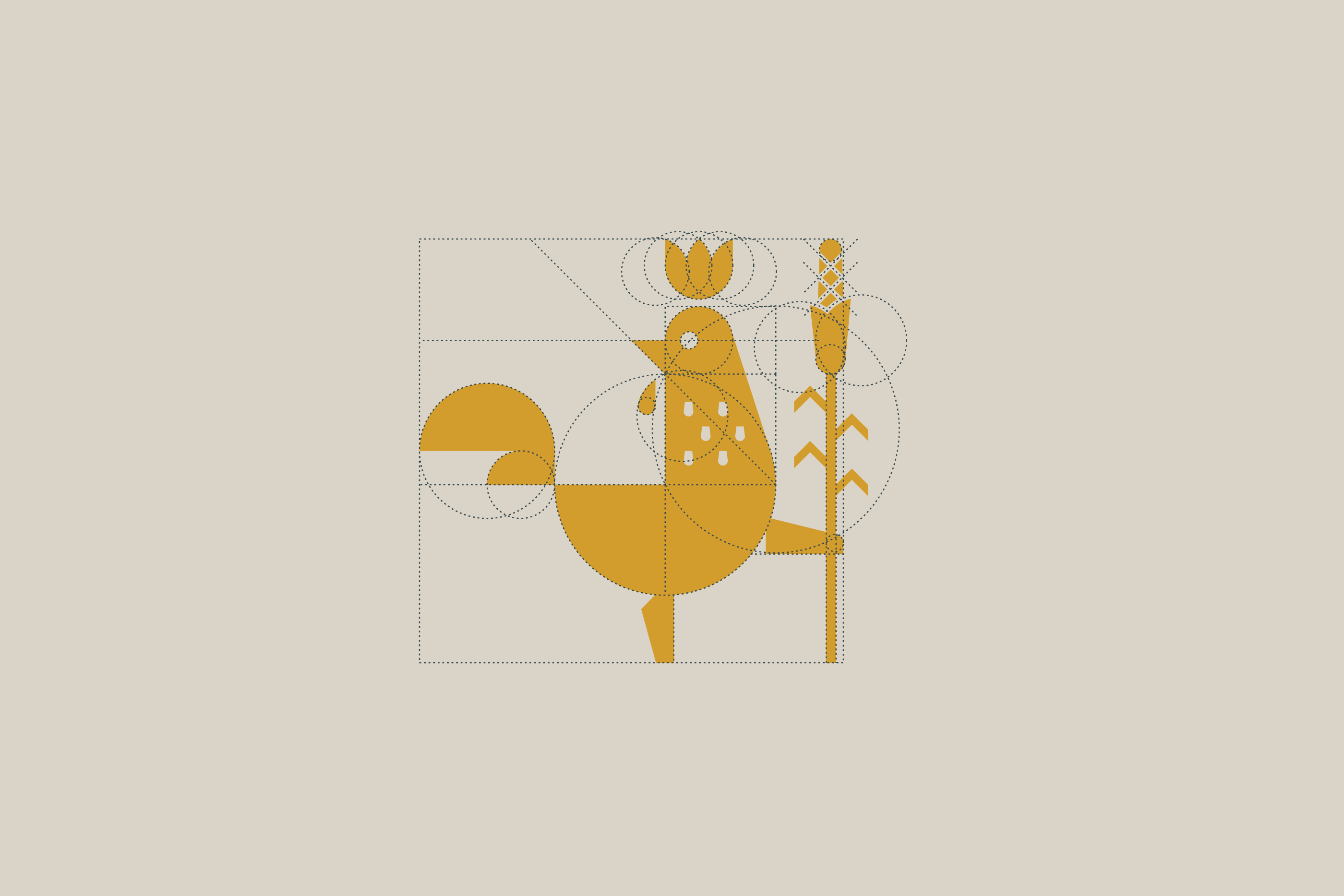 One of the key considerations was how to reinterpret maize, a central element in the original identity. I chose to integrate it into a new symbol—a rooster holding the maize in a respectful and protective gesture. This not only honored its cultural and agricultural importance but also introduced a subtle yet powerful emblem of care, strength, and continuity. After receiving feedback from one of the owners, I also moved away from a romanticized, bucolic view of farming and focused instead on clarity, relevance, and versatility.