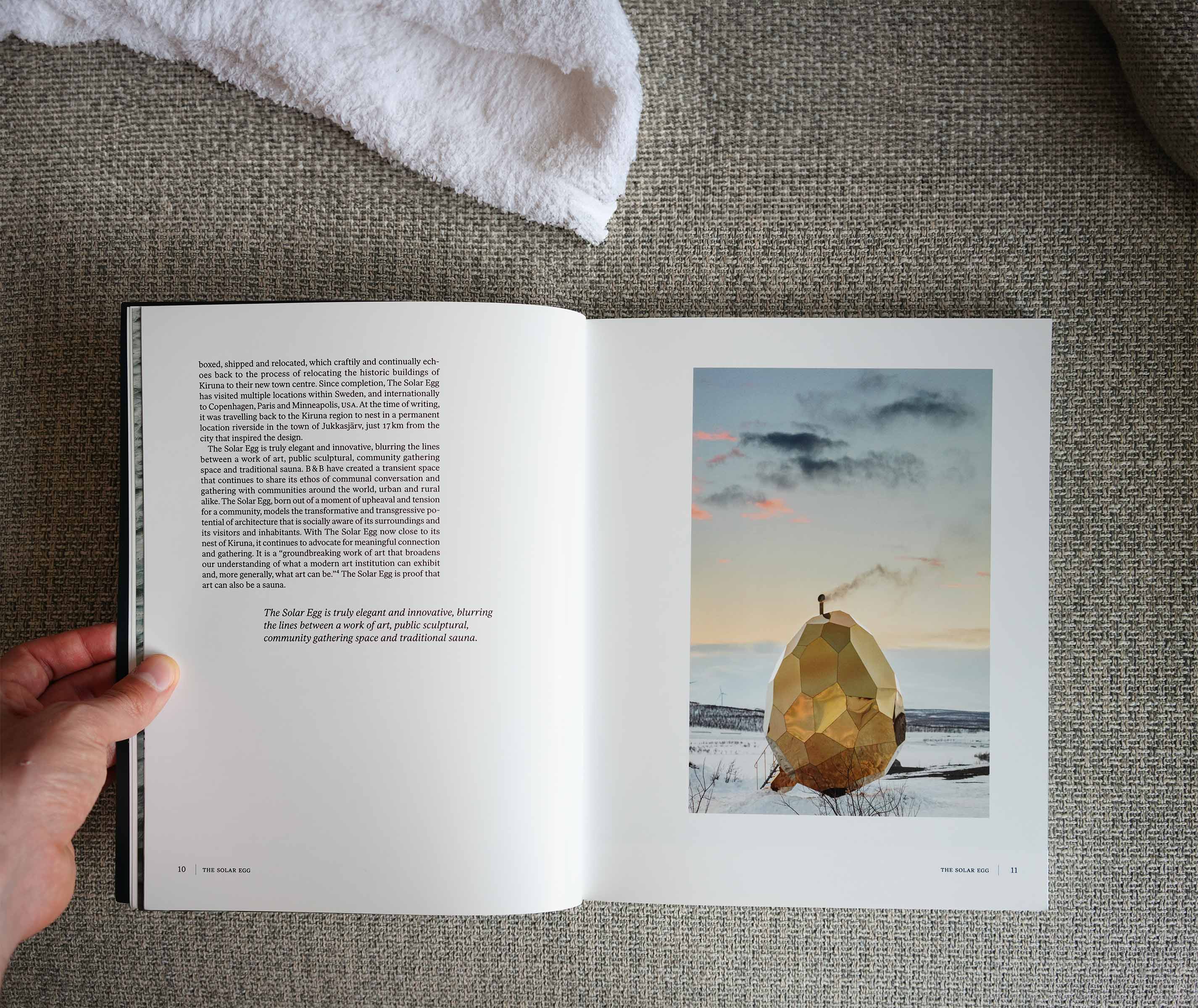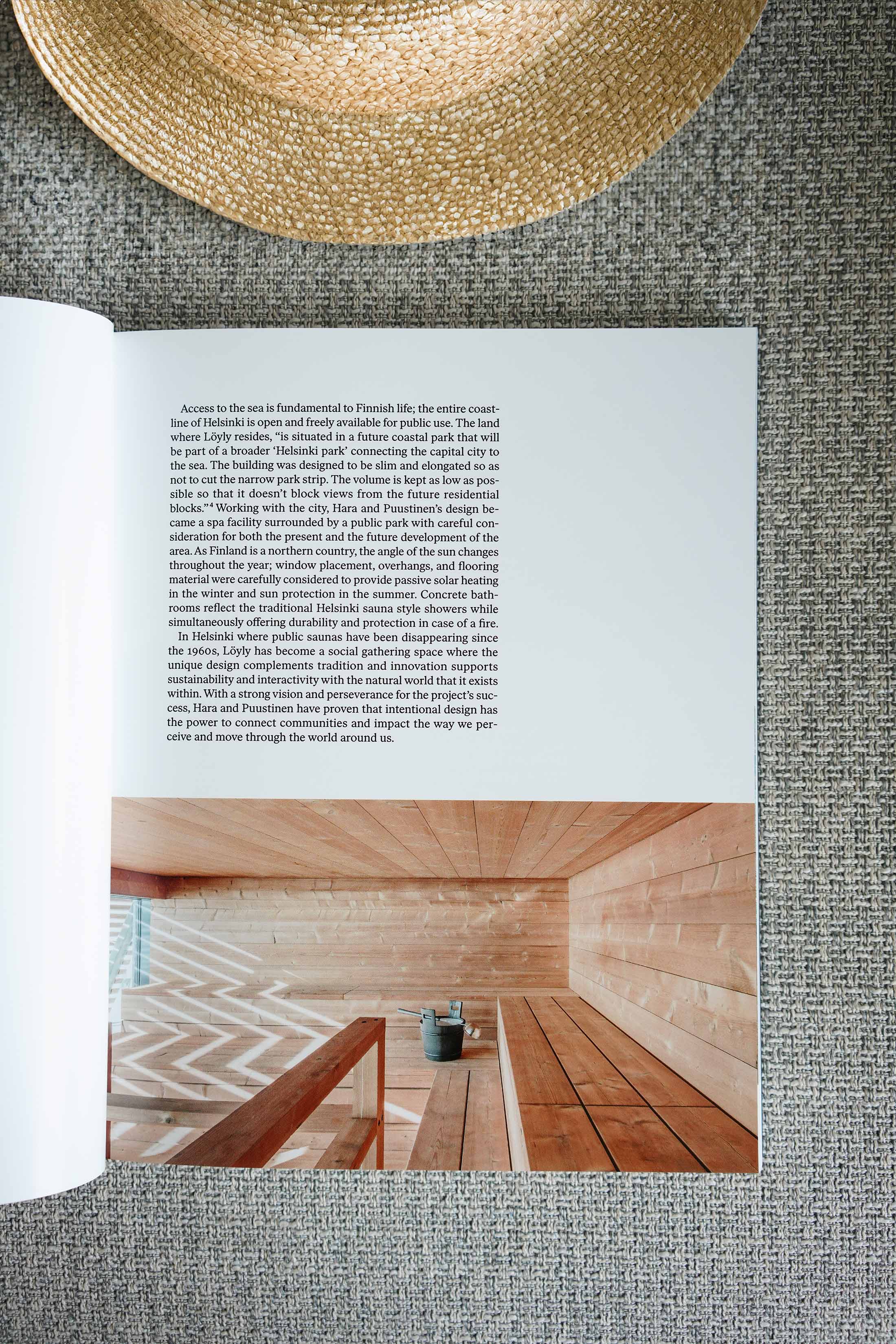 For typography, I selected Ivar and LL Circular, two contrasting yet complementary typefaces. Ivar brings a softness and hand-crafted warmth, while LL Circular adds clarity and a clean, modern tone. Together, they echo the duality of sauna architecture: intimate and elemental, yet contemporary and refined. I worked closely with editors Ella Adkings and Martin Walker, maintaining an open dialogue to fine-tune both the structure and feel of the book.